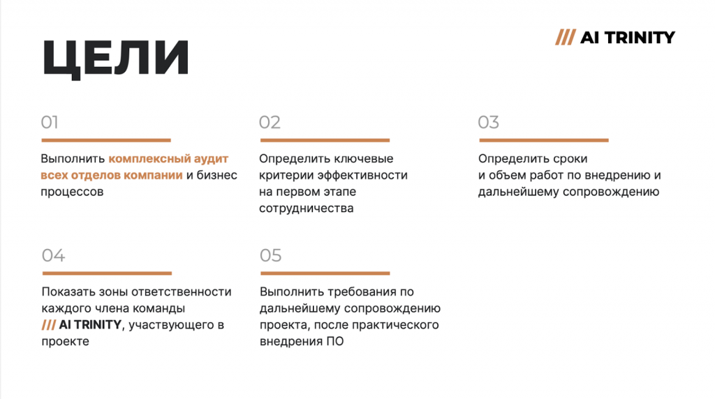 - Сделать так, чтобы каждый сотрудник в компании понимал, за что он отвечает и на какие цифры он может и должен влиять. Через внедрение метрик усилить мотивацию и вовлеченность каждого сотрудника.